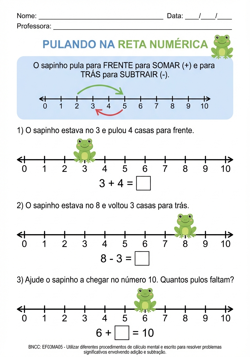 atividade adição e subtração por calculo mental na reta numérica 3 ano para alunos com autismo