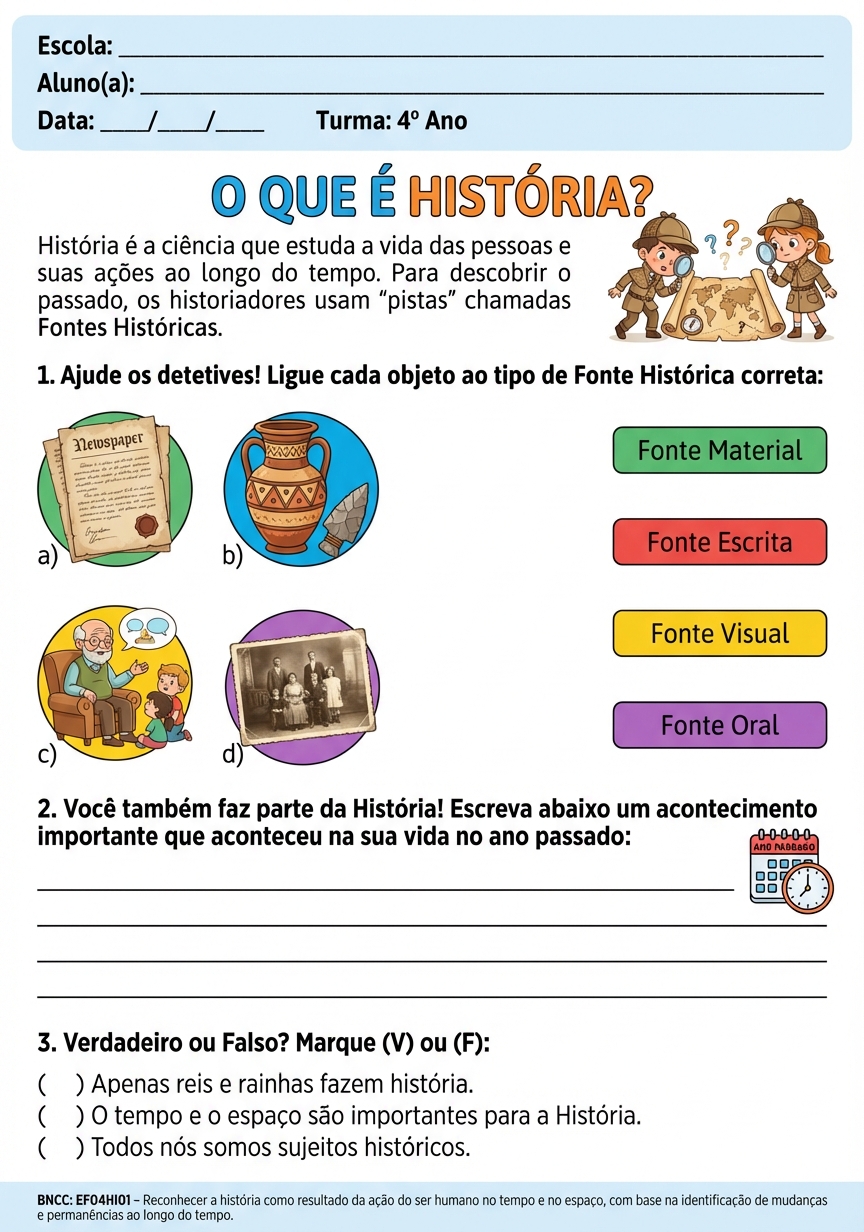 Atividade de 4ano. O que é história