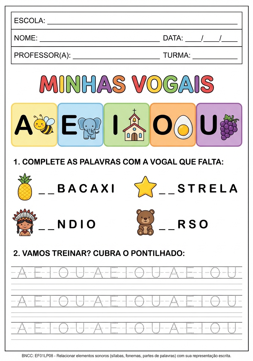 Atividade: Atividade de alfabetização com as vogais