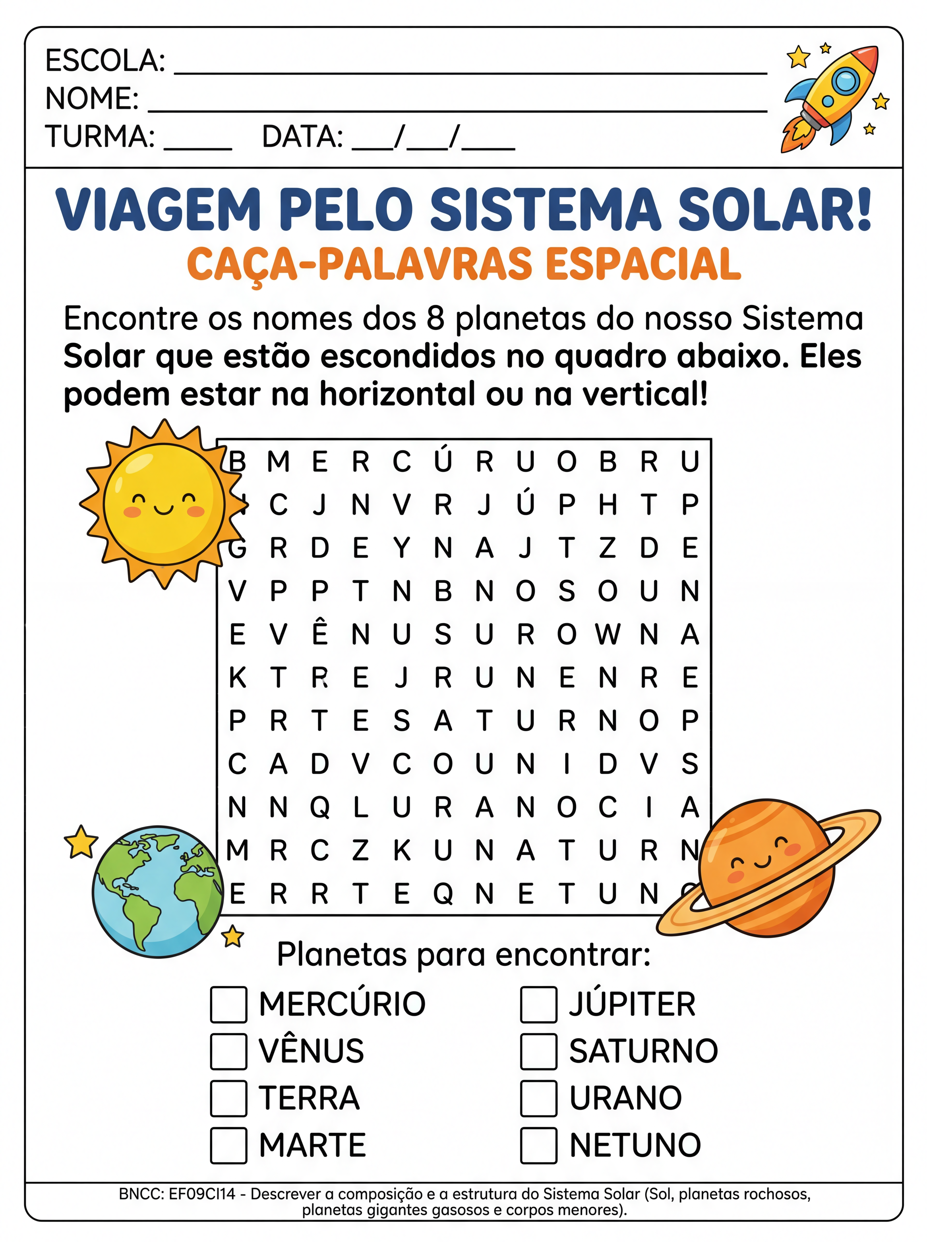 Atividade: atividade de caça palavras com os 8 planetas do sistema solar