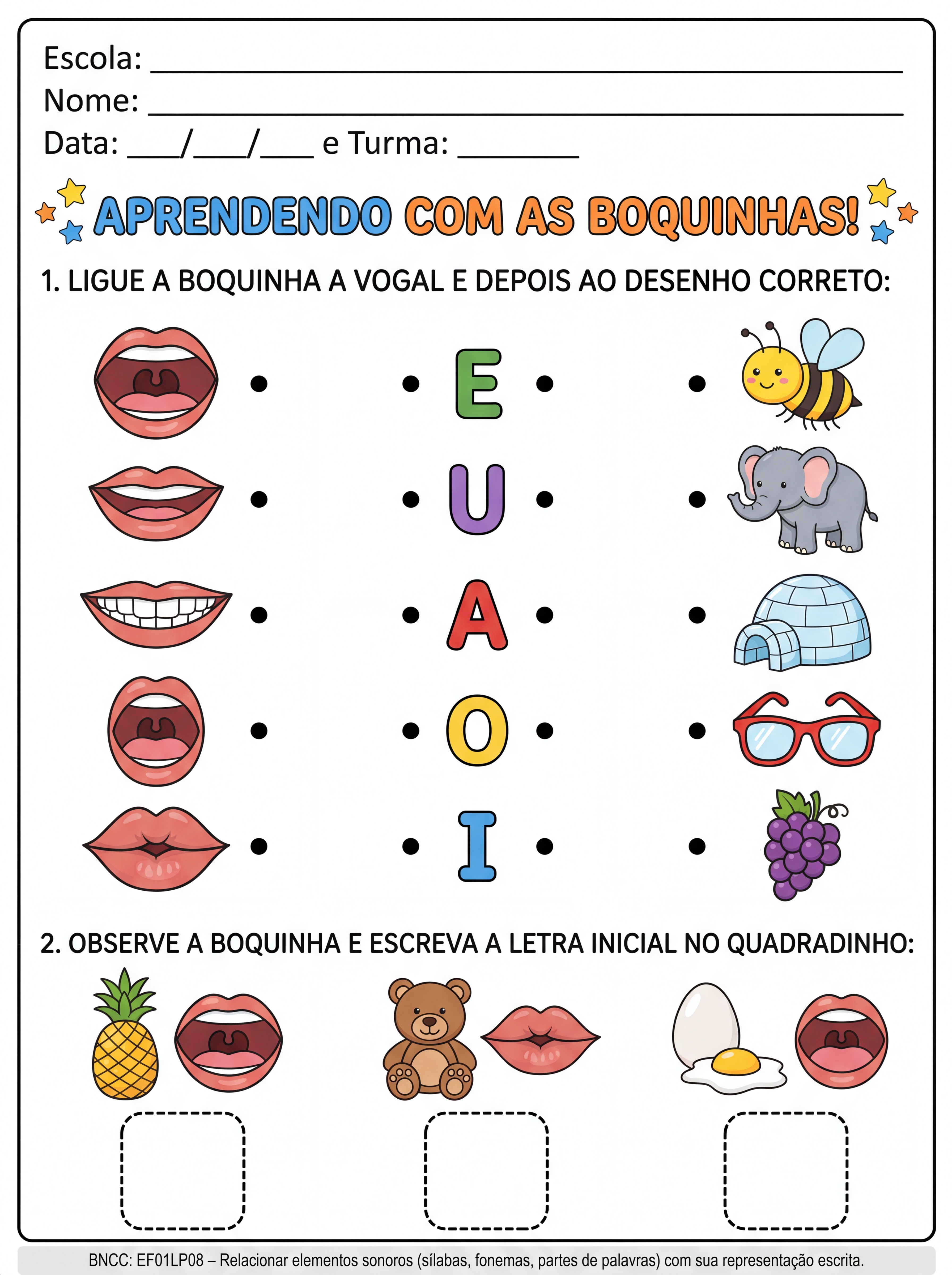 Atividade Língua Portuguesa, método das boquinhas 1º ano, A4