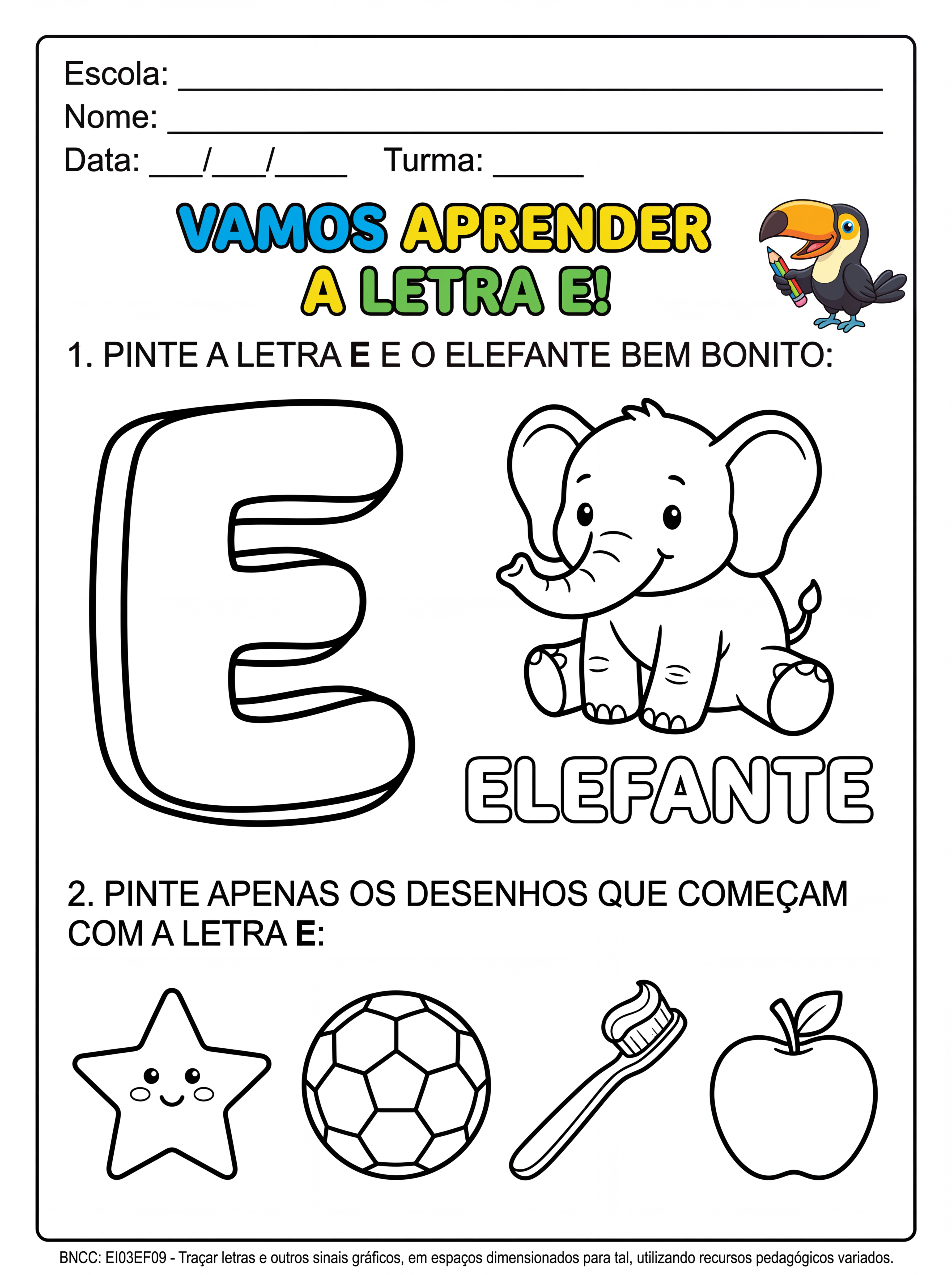 Atividade para educação infantil sobre a letra e para colorir
