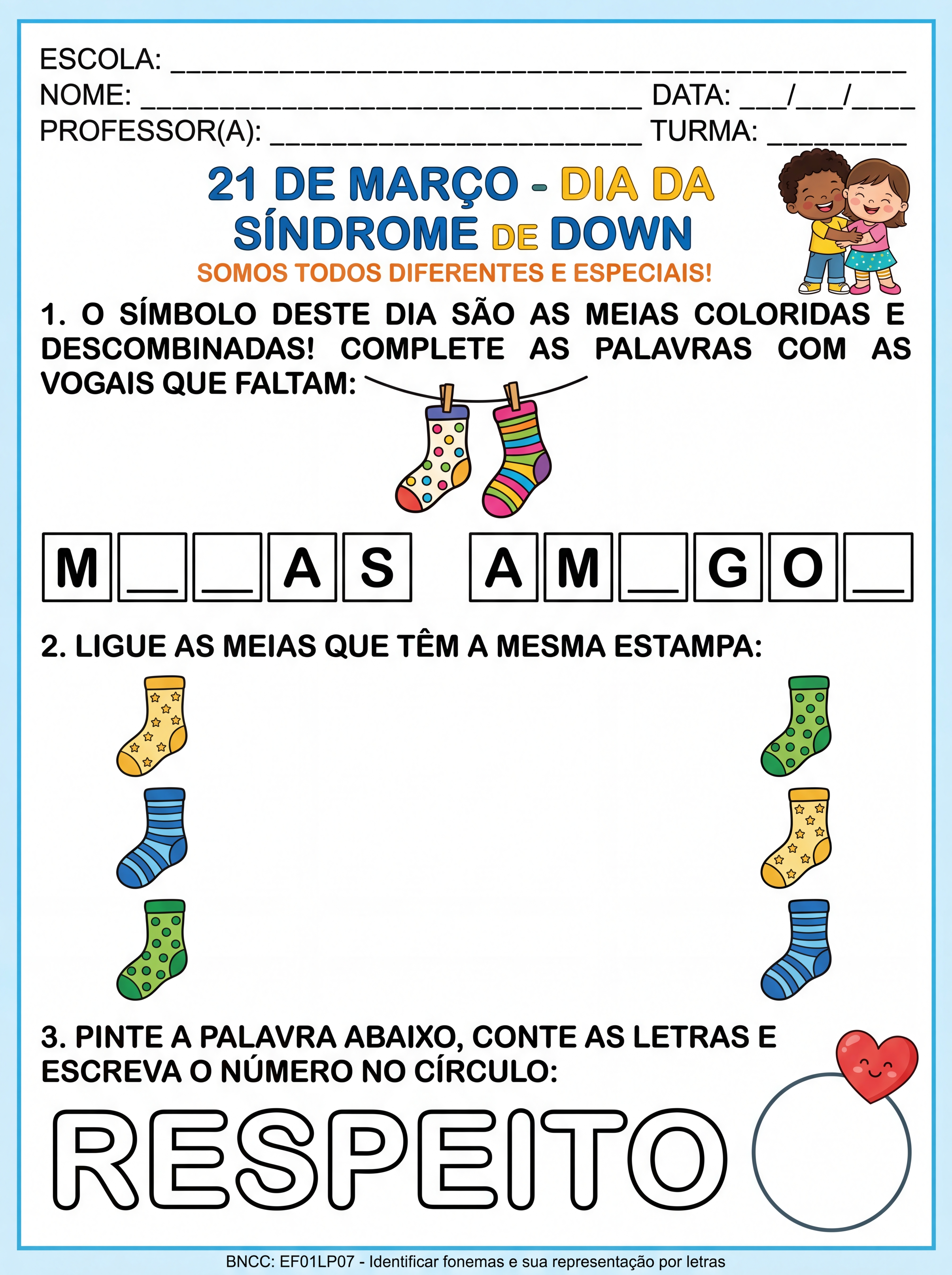 ATIVIDADES DIA DA SÍNDROME DE DOWN PARA ALFABETIZAÇÃO