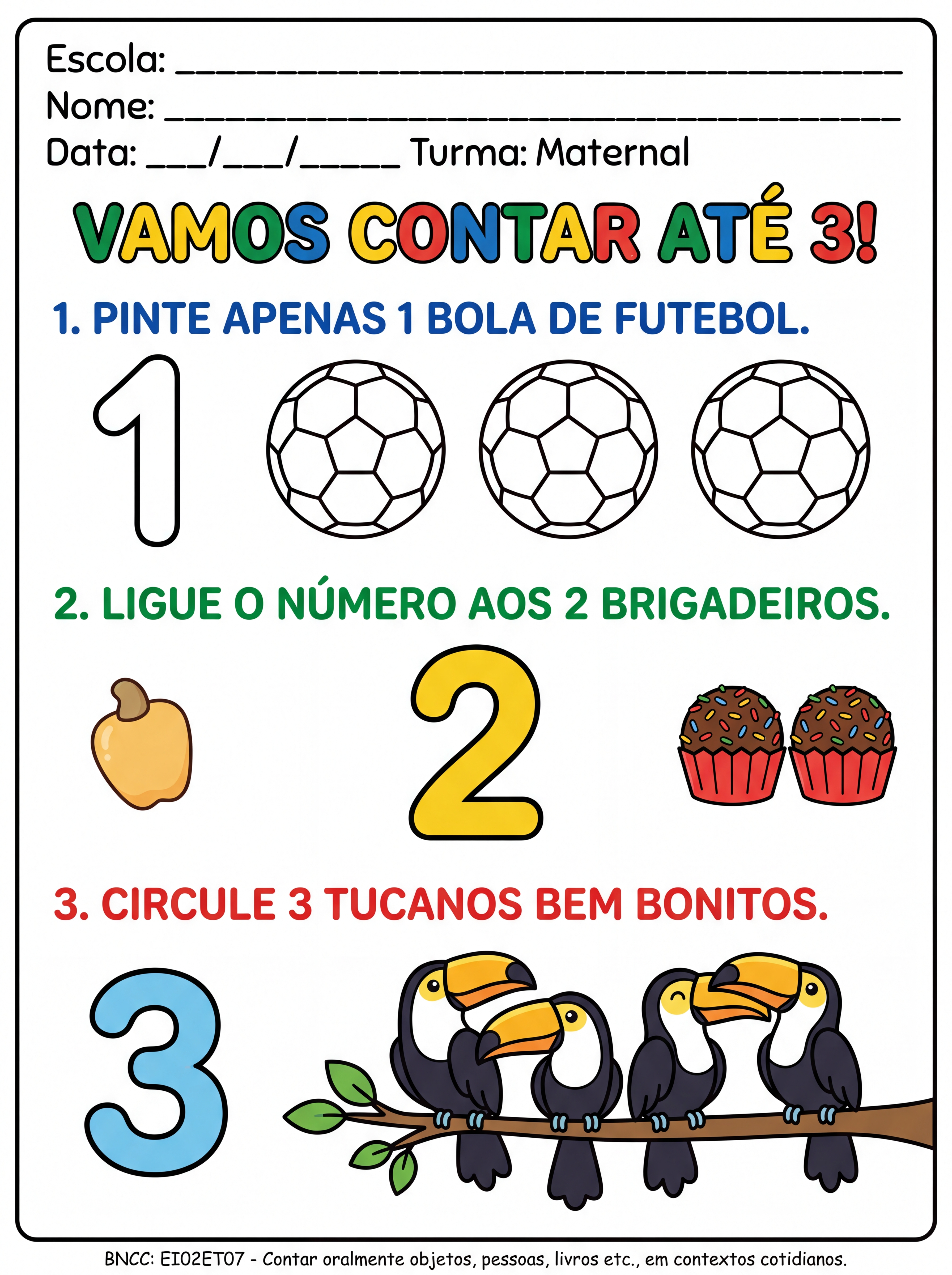 Atividades numerais até o 3 para maternal