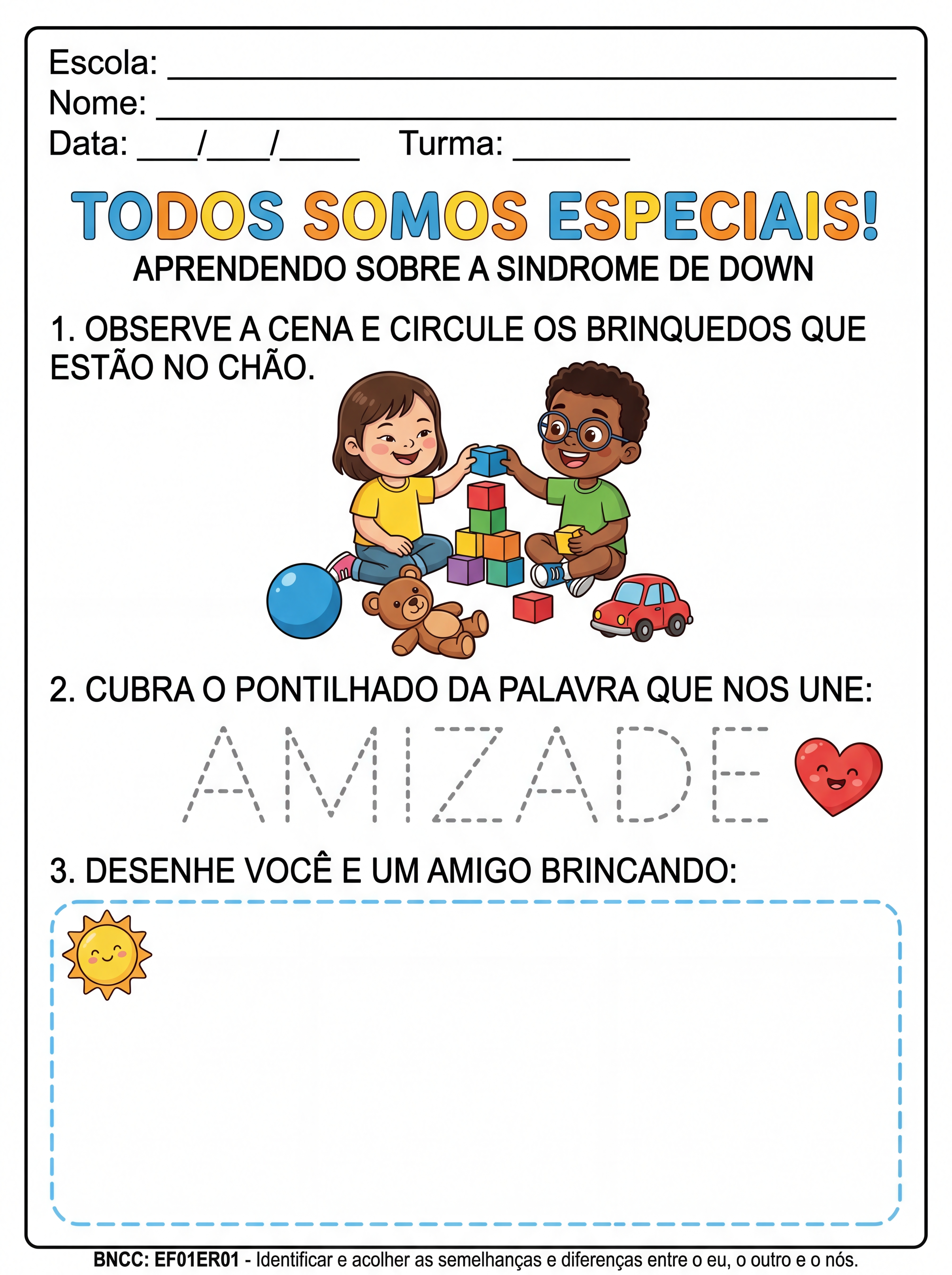 Atividade: ATIVIDADES SOBRE A SÍNDROME DE DOWN PRIMEIRO ANO