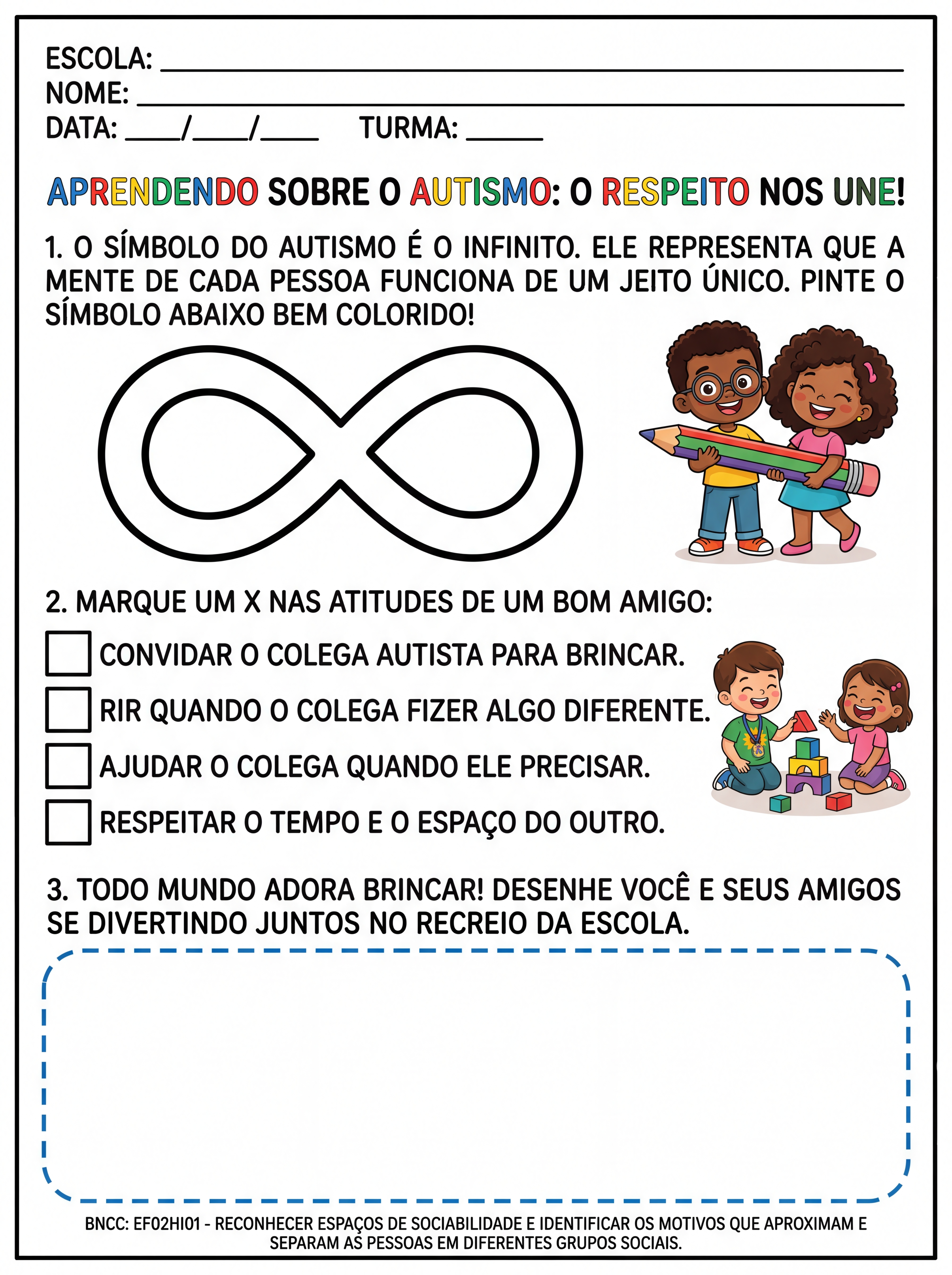ATIVIDADES SOBRE AUTISMO PARA 2º ANO COM LETRA BASTÃO