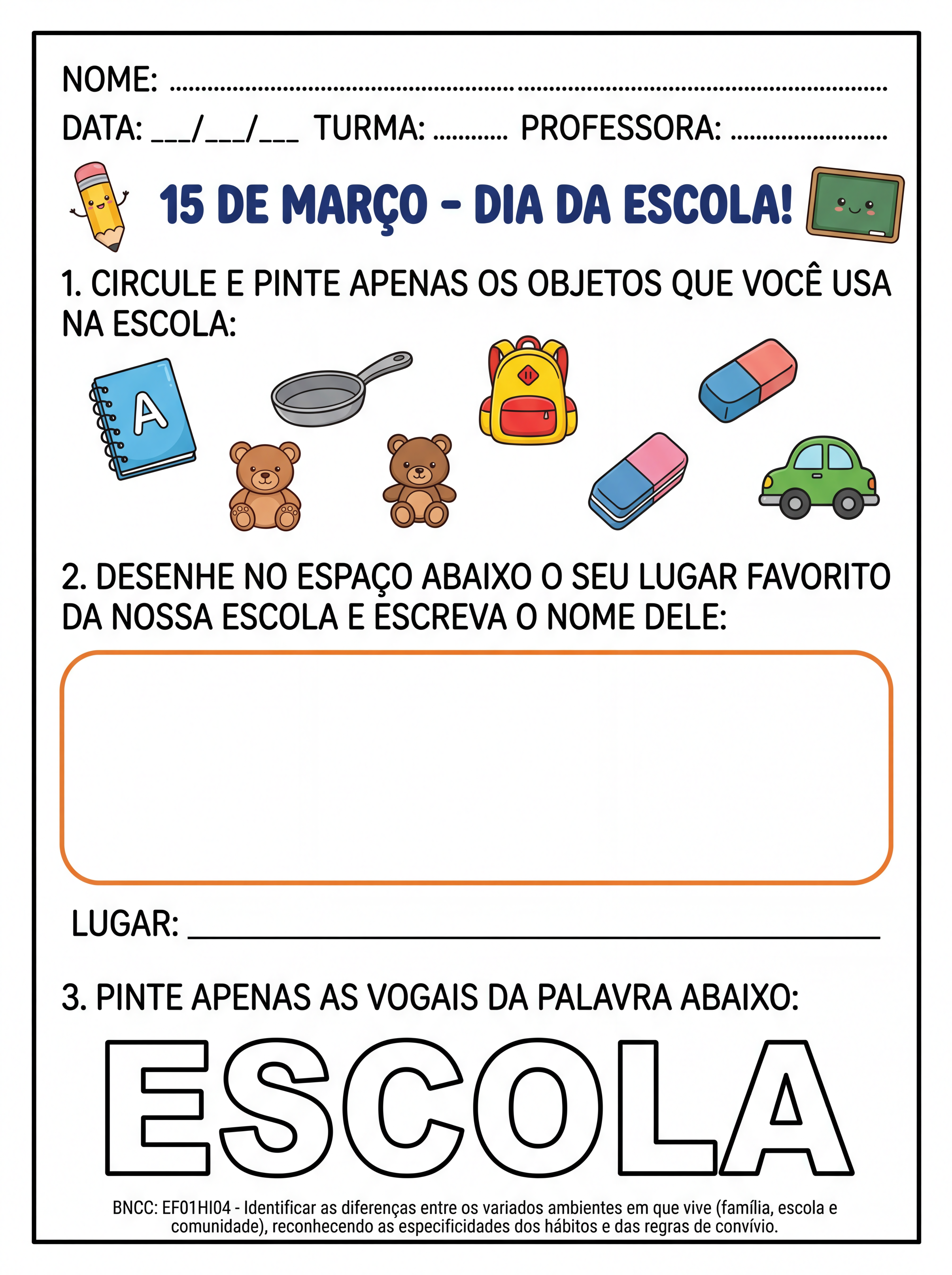 Atividade: Atividades sobre o dia da escola para primeiro ano