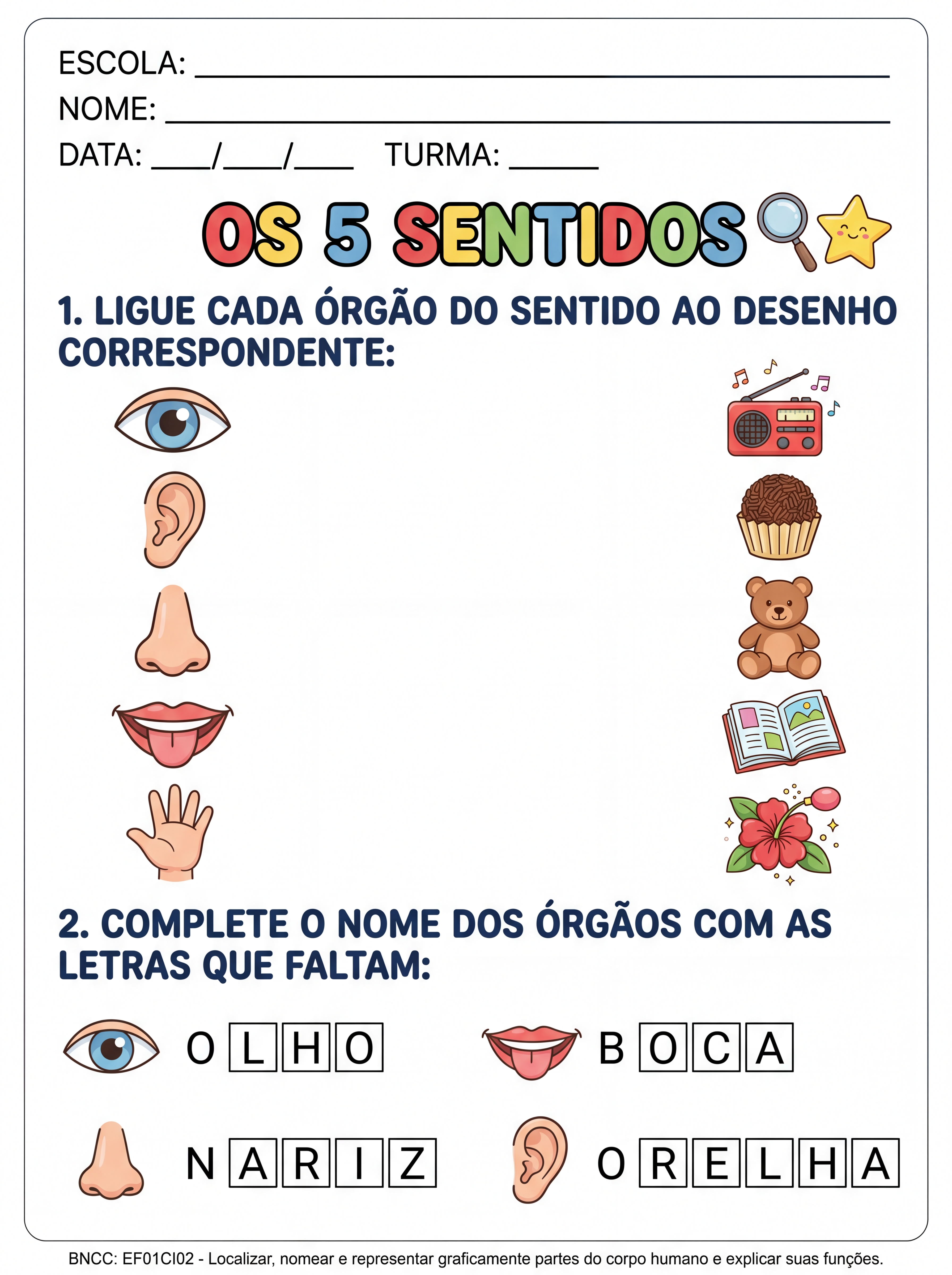ATIVIDADES SOBRE OS 5 SENTIDOS PARA ALFABETIZAÇÃO