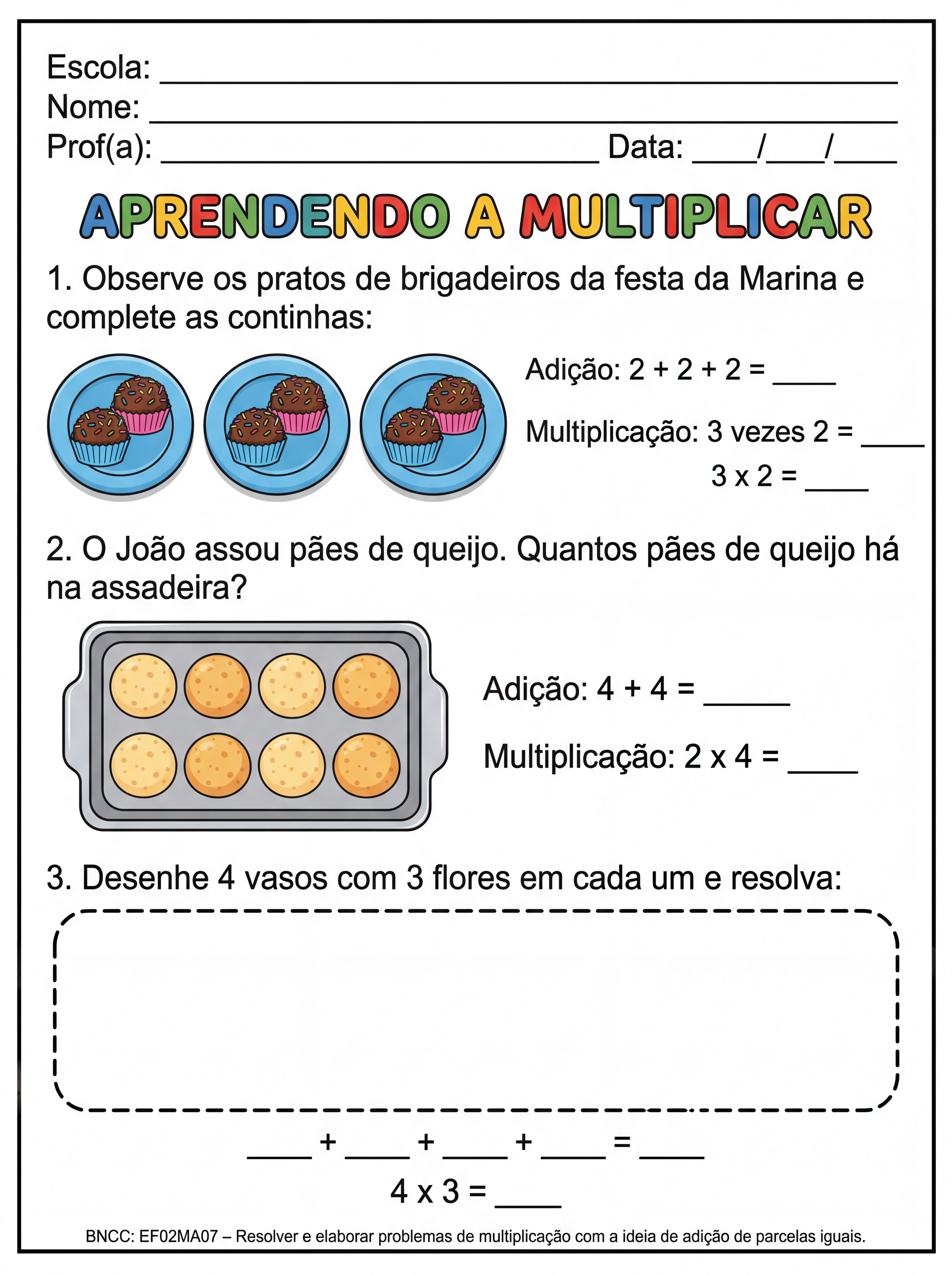 Atividade: criar uma ilustração para ensinar a multiplicação para alunos de alfabetização com noção de adição e a organização da multiplicação