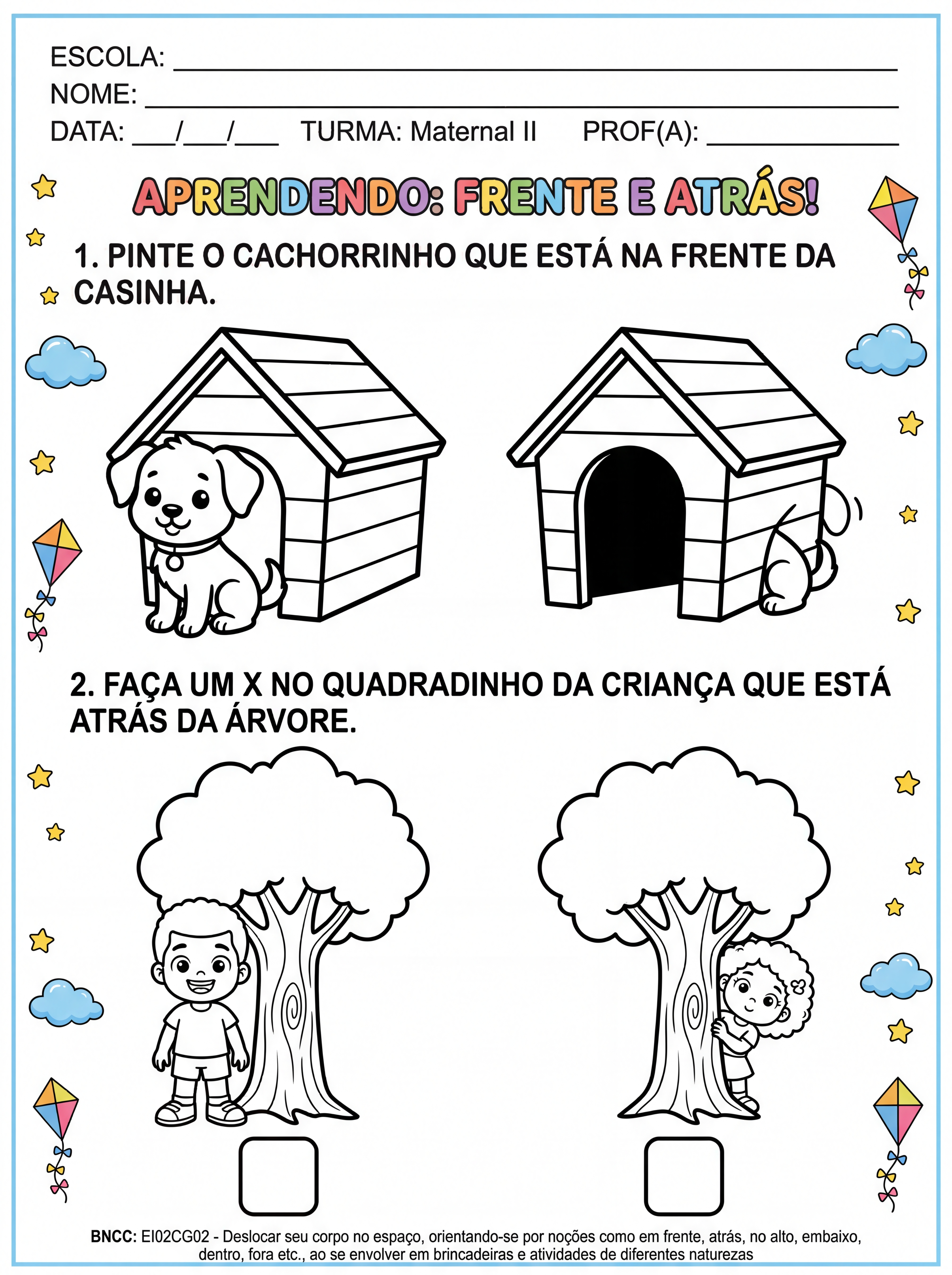 Crie uma atividade para crianças do maternal , A atividade deve conter : coordenação motora e as vogais A, E, a atividade deve ser em preto e branco para impressão e para o aluno colorir as ilustrações.