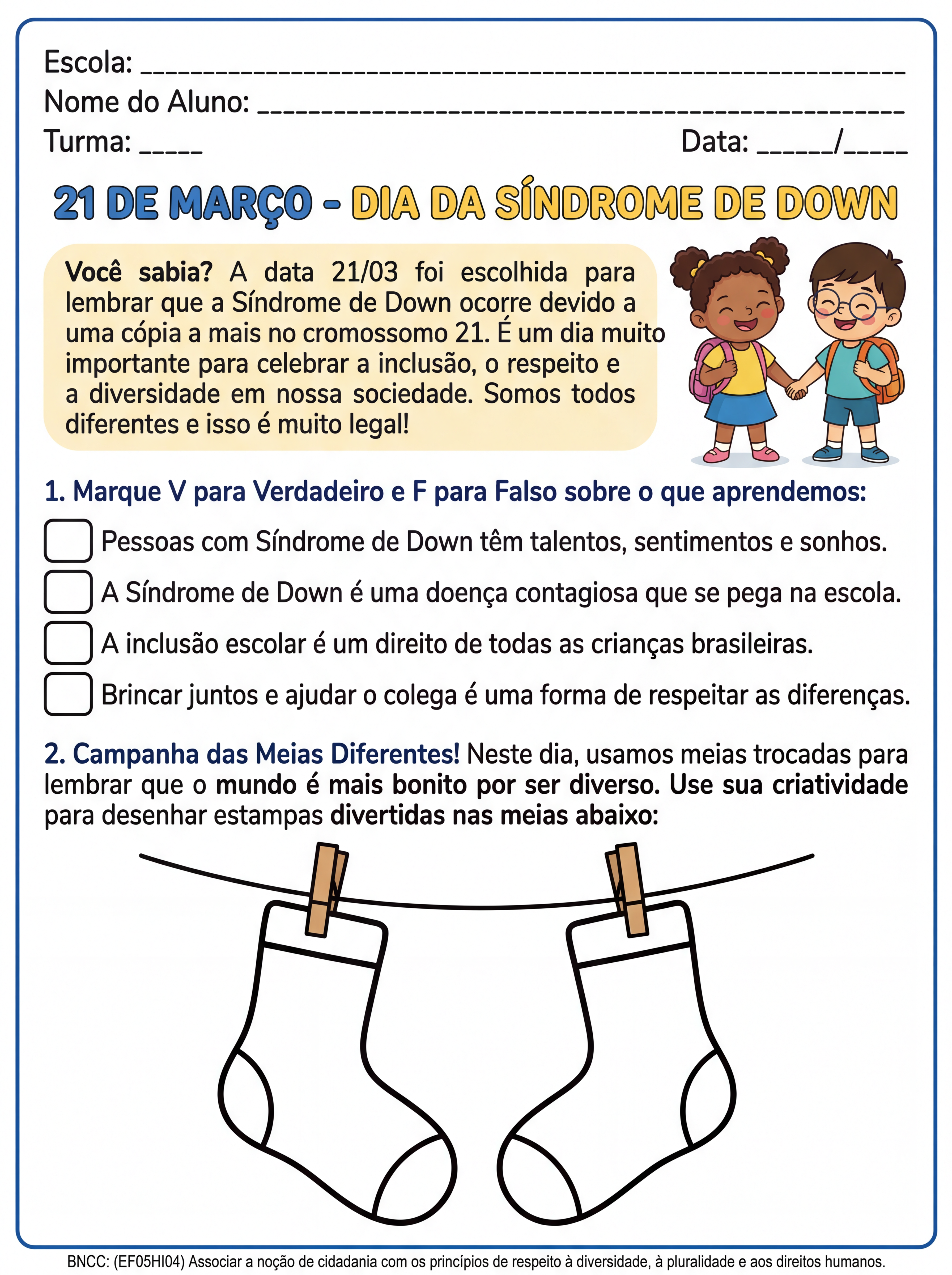 Atividade: Crie uma atividade informativa e criativa sobre o dia da síndrome de down para alunos do 5 ano
