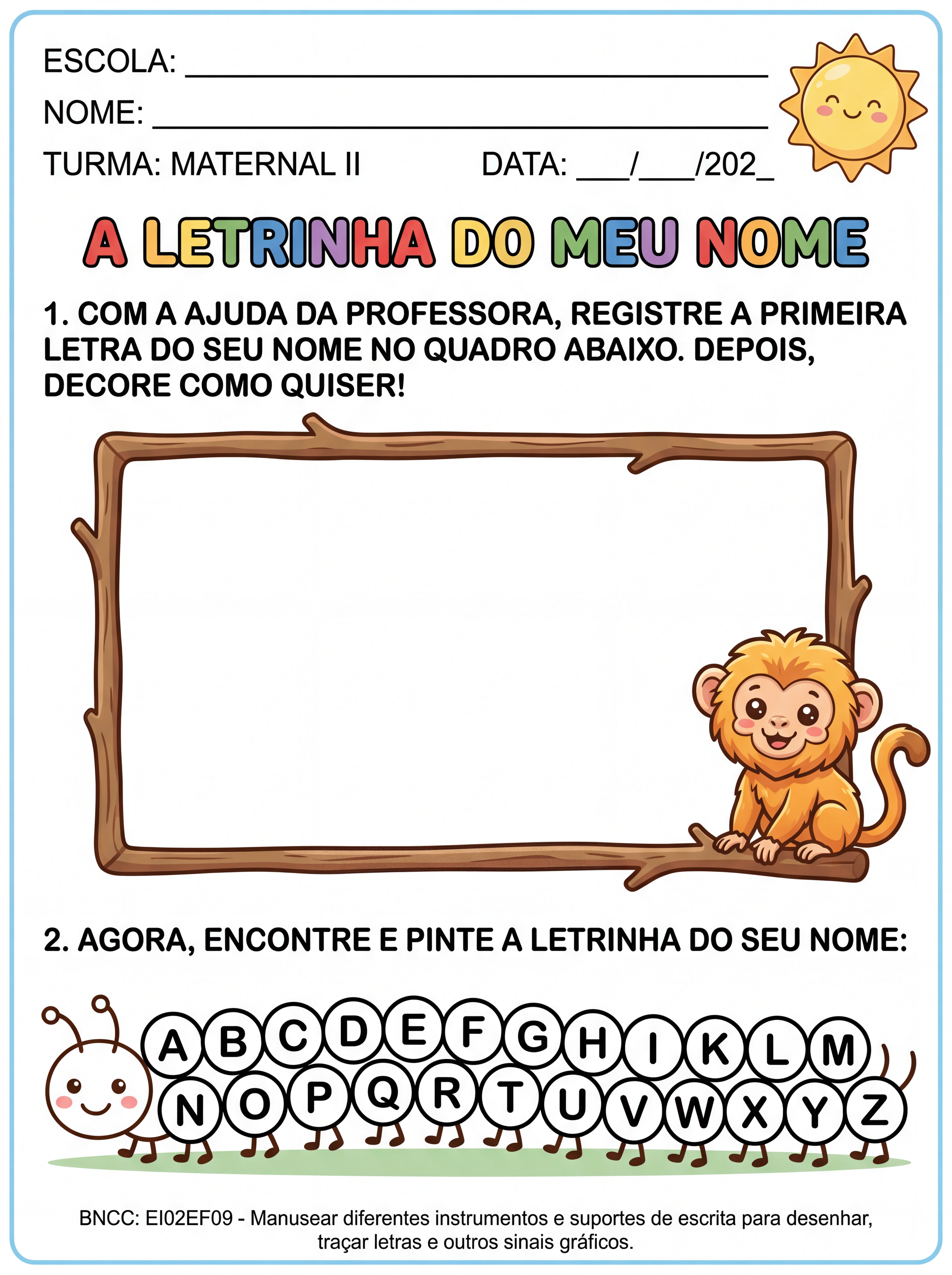Crie uma atividade para trabalhar a letra inicial do nome com crianças da creche maternal II.