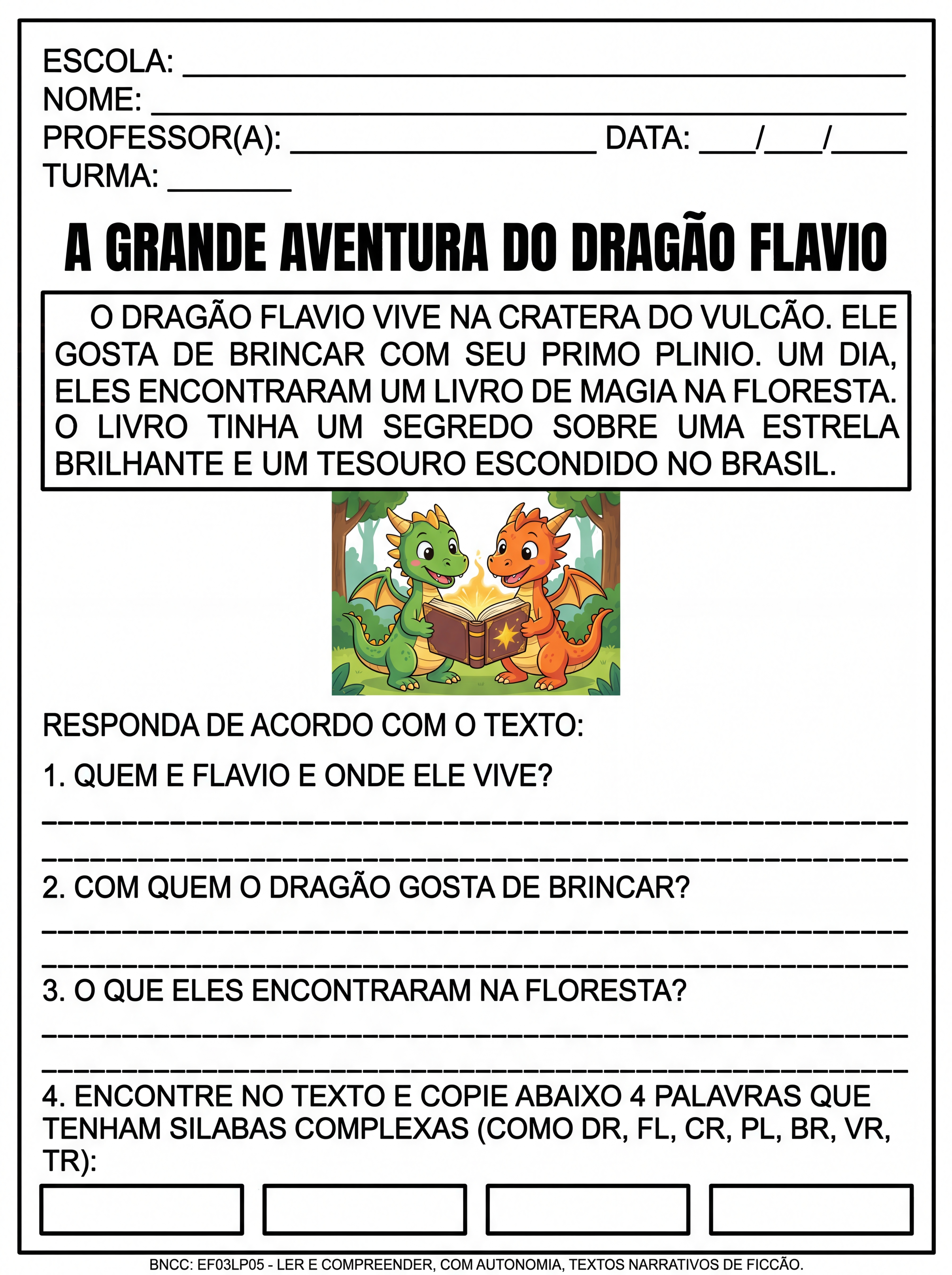 atividade sobre interpretação de textos de sílabas complexas para o terceiro ano.