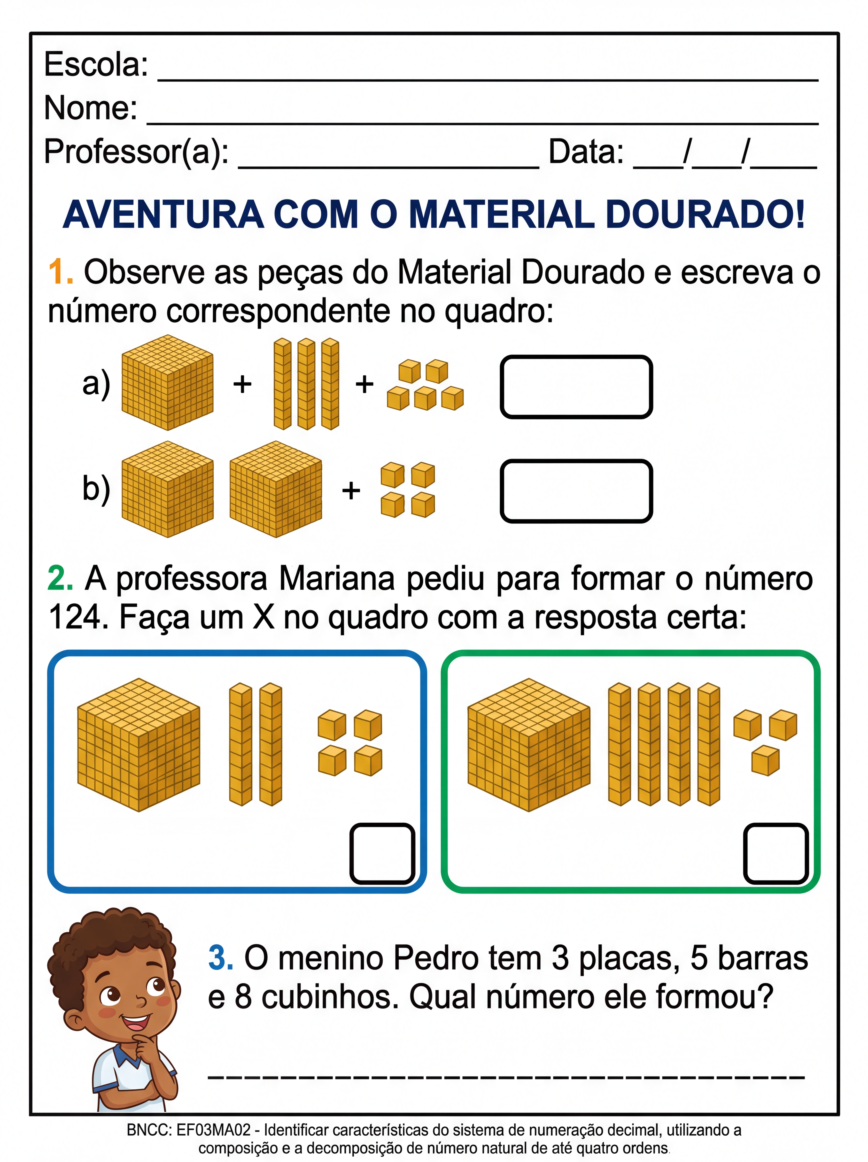 EXERCÍCIOS COM MATERIAL DOURADO PARA 3º ANO