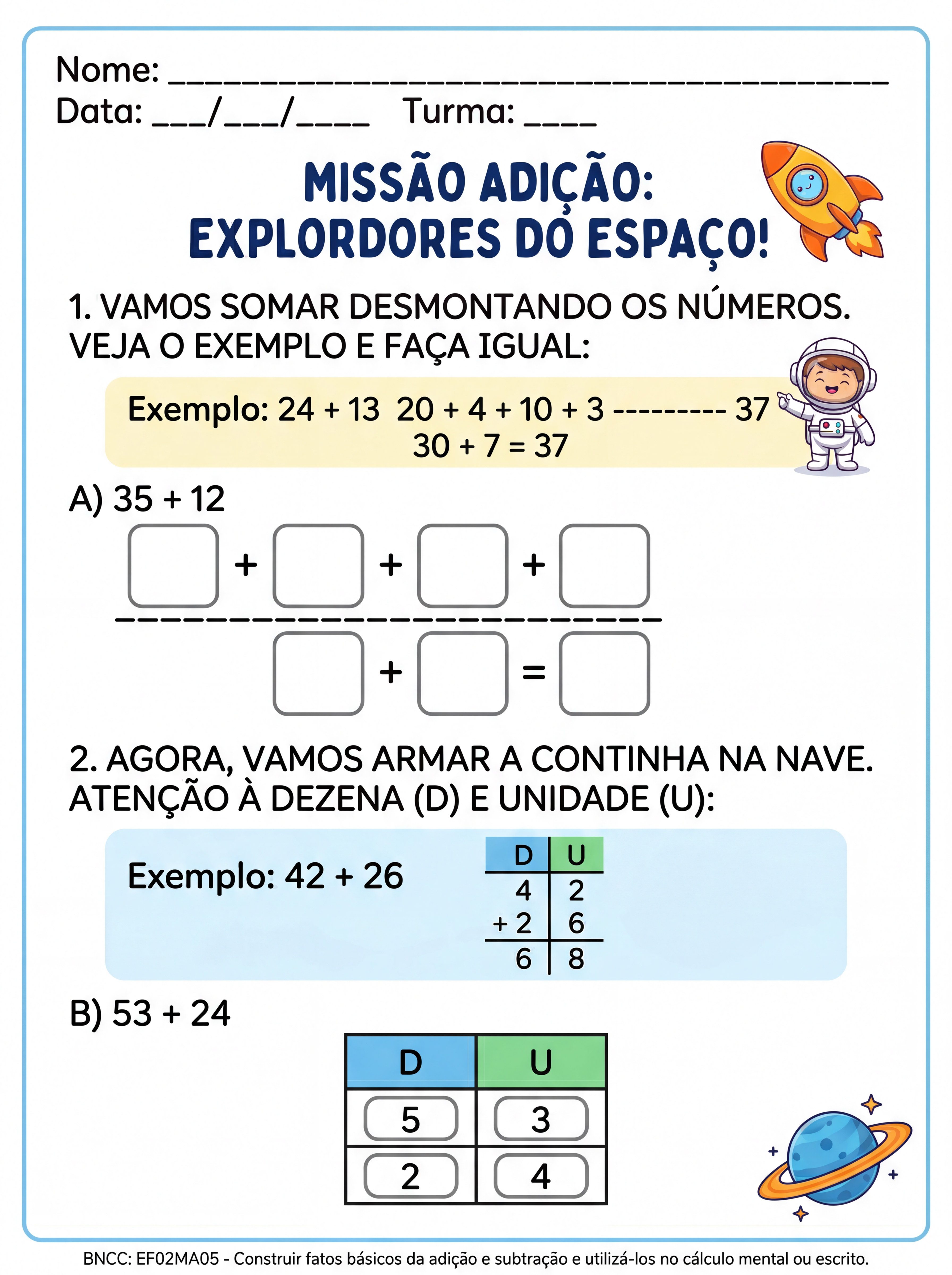 Atividade: faça atividades adaptadas de algaritmos de adição usando a decomposição e o convencional para um aluno com tea e tdah.