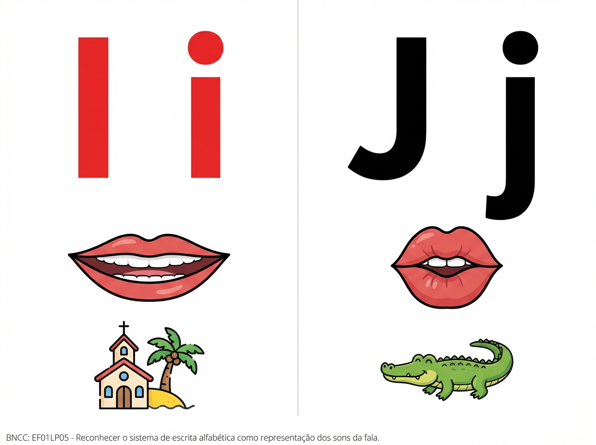Faça o alfabeto fônico com a boquinha que representa o som. Letra em bastão maiúsculo e minúsculo. 2 letra por folha separada em 2 colunas , que caiba em toda a folha para impressão Tire o cabeçalho, as letras pontilhados, o título. Faça apenas as letras Ii, Jj com o desenho, na folha em formato paisagem Pinte as vogais em vermelho e as consoantes em preto Faça a letra maior do que o desenho