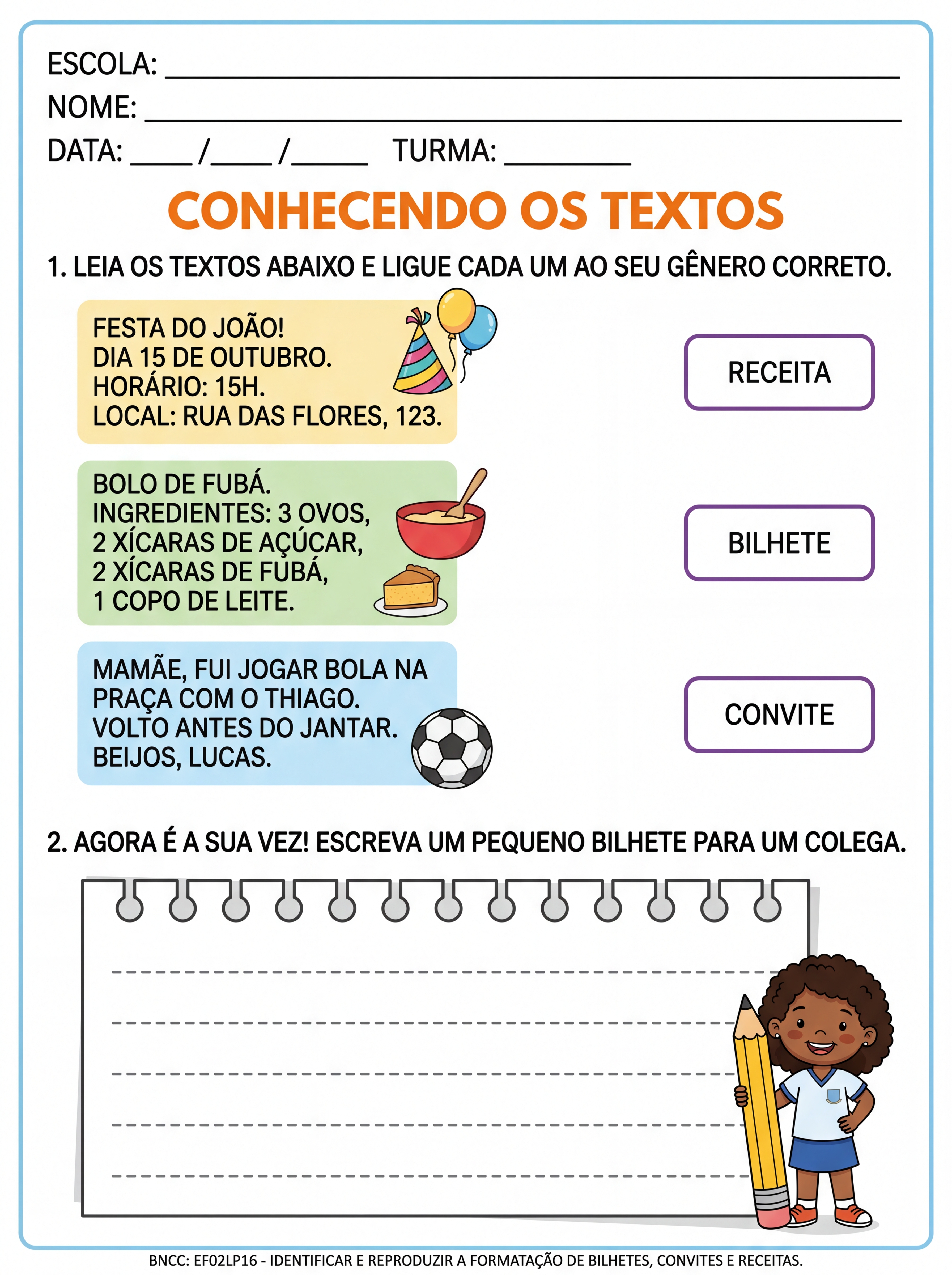 Atividade: Gêneros textuais com letra bastão atividades para recomposição do 2 ano 4 ano .